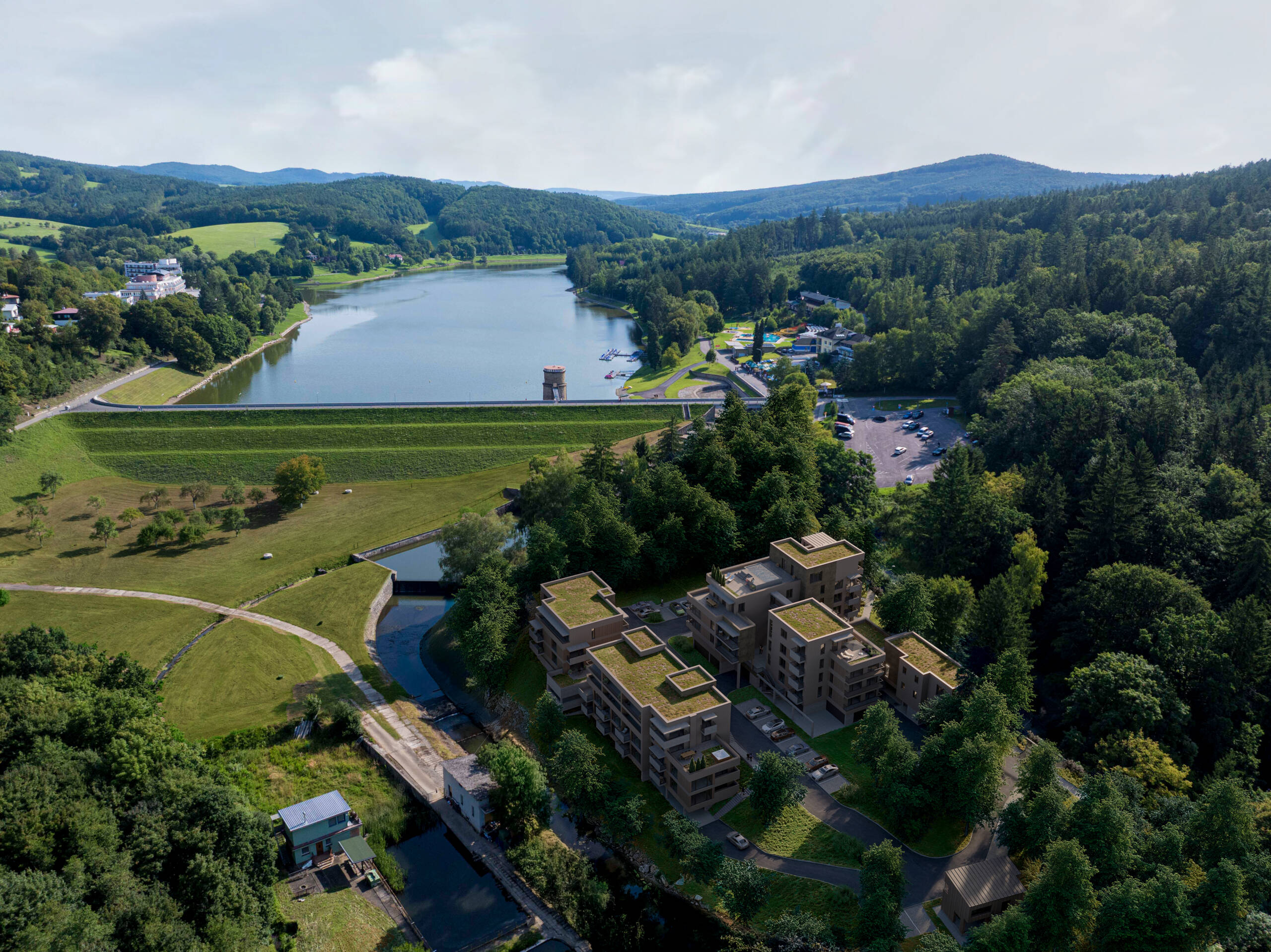 Apartmány U Hladiny leží přímo u Luhačovické přehrady v tichém údolí obklopeném lesy.