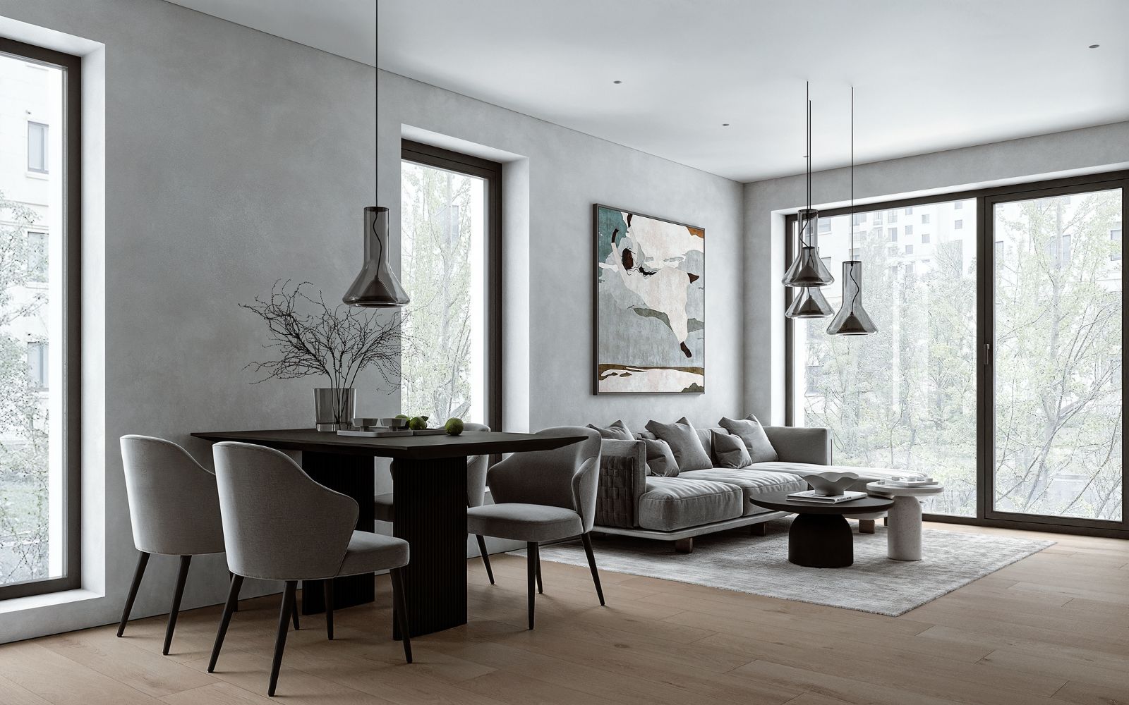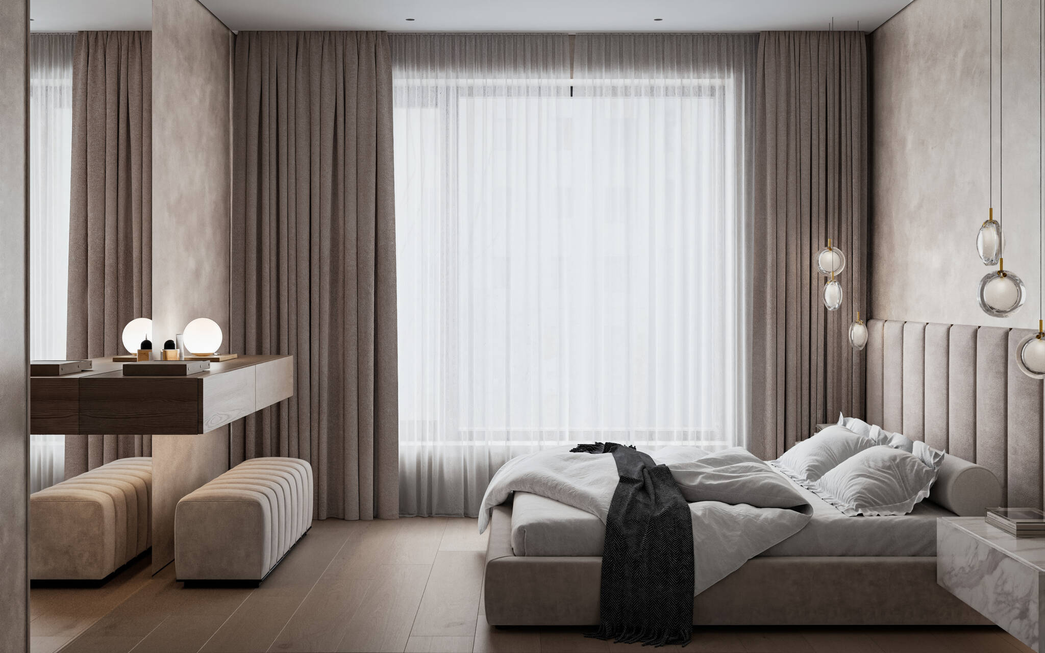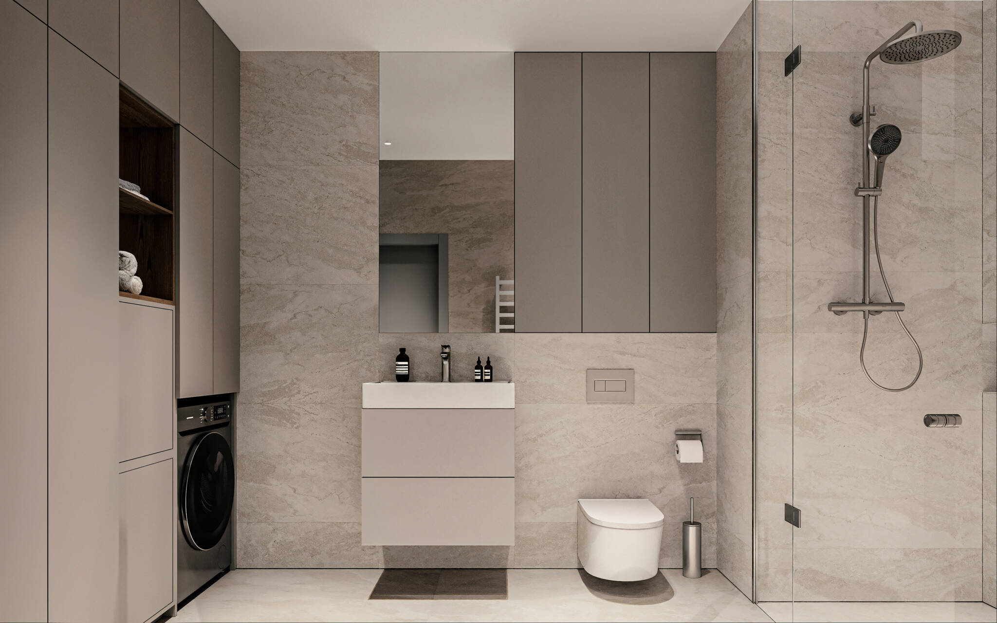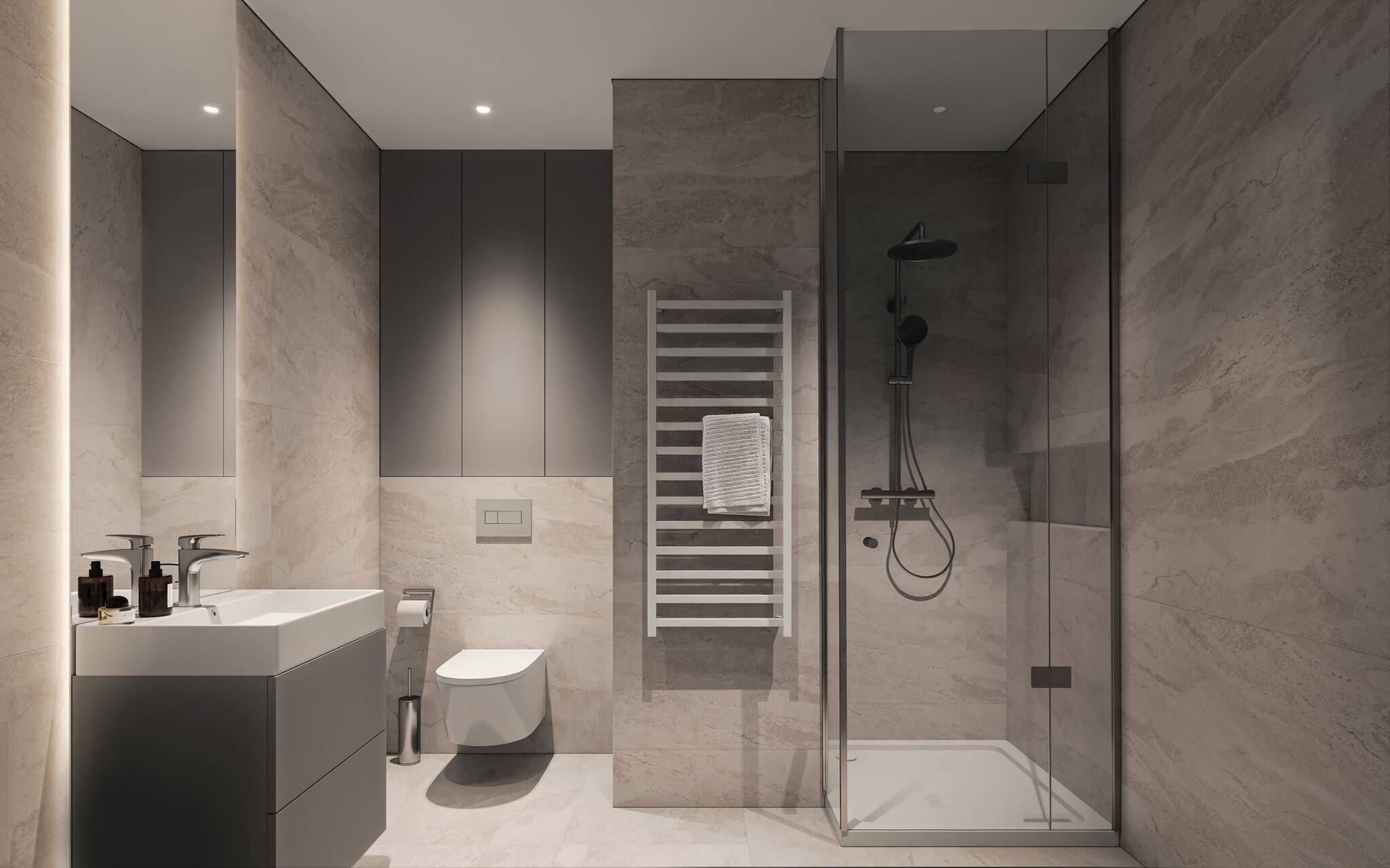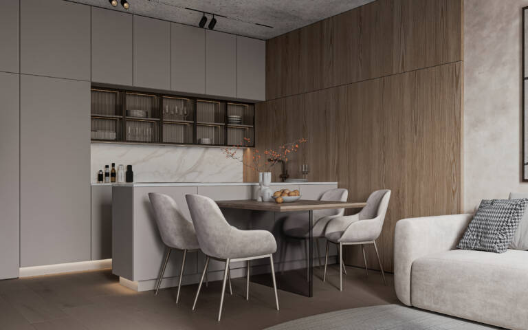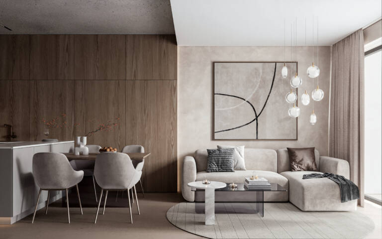 Vkusný a nadčasový design interiérů odpovídá čisté estetice celého projektu.